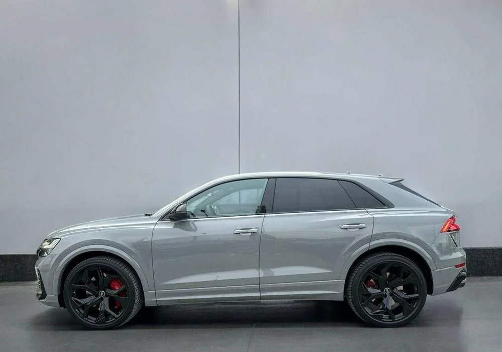 - Listwy progowe w sportowej stylistyce, podświetlane z napisem Q8 RS