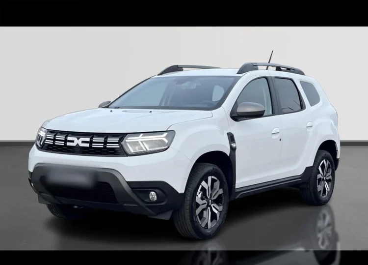 - Tapicerka materiałowa w kolorze czarnym z białymi przeszyciami i logiem Duster