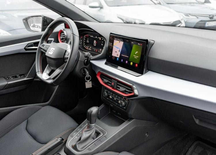 - Fotele sportowe z czerwonym przeszyciem